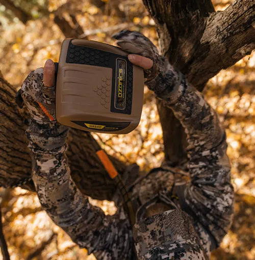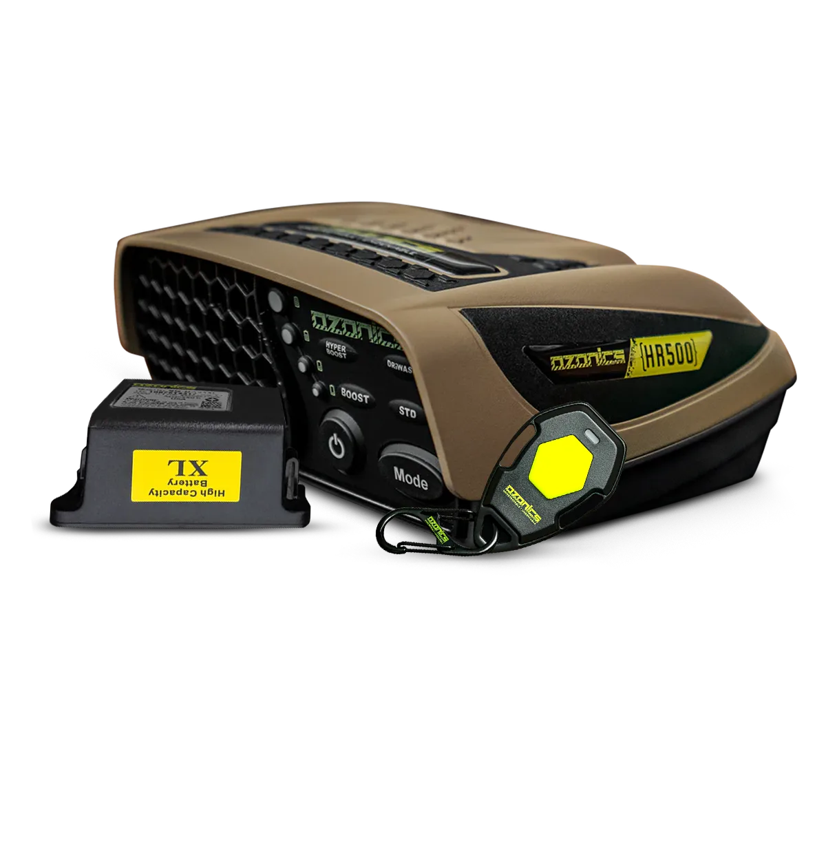 Everything a serious hunter needs for unmatched scent control and prolonged field performance is included in the HR500 Performance Pack. This all-in-one package, which includes the latest technology HR500 scent elimination unit, an additional SG-BA03XL extended life battery, and the OZ-REMOTEP remote control, is designed to keep you concealed, energised, and in control throughout the day.